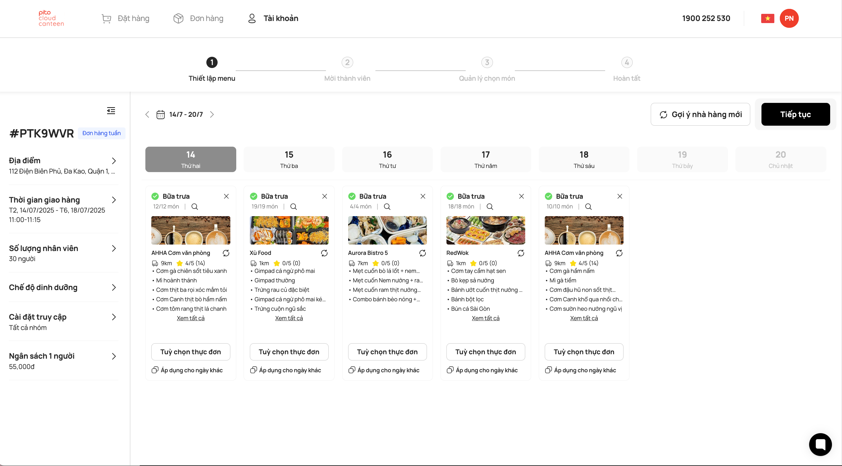 Đối với dịch vụ đặt thức ăn PITO Cloud Canteen, bạn hoàn toàn có thể. Bạn lên lịch bằng cách chọn các ngày trong tuần của tuần ăn, hệ thống chỉ đề xuất các nhà hàng trong ngày được chọn.